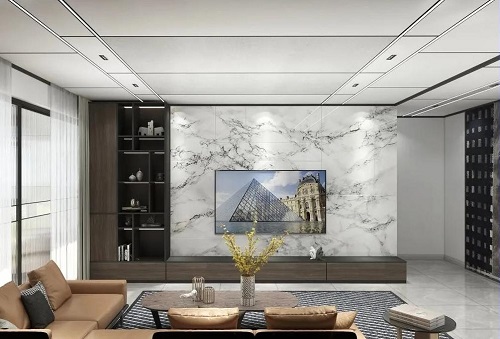 大板吊頂不僅僅是單純的將扣板的尺寸變大,還包括它的一個整體設計都是突破了原有小尺寸集成吊頂扣板的局限,是一種吊頂空間的全新跨越,通過與型材線梁的完美組合為消費者帶來不一樣的視覺空間體驗。
