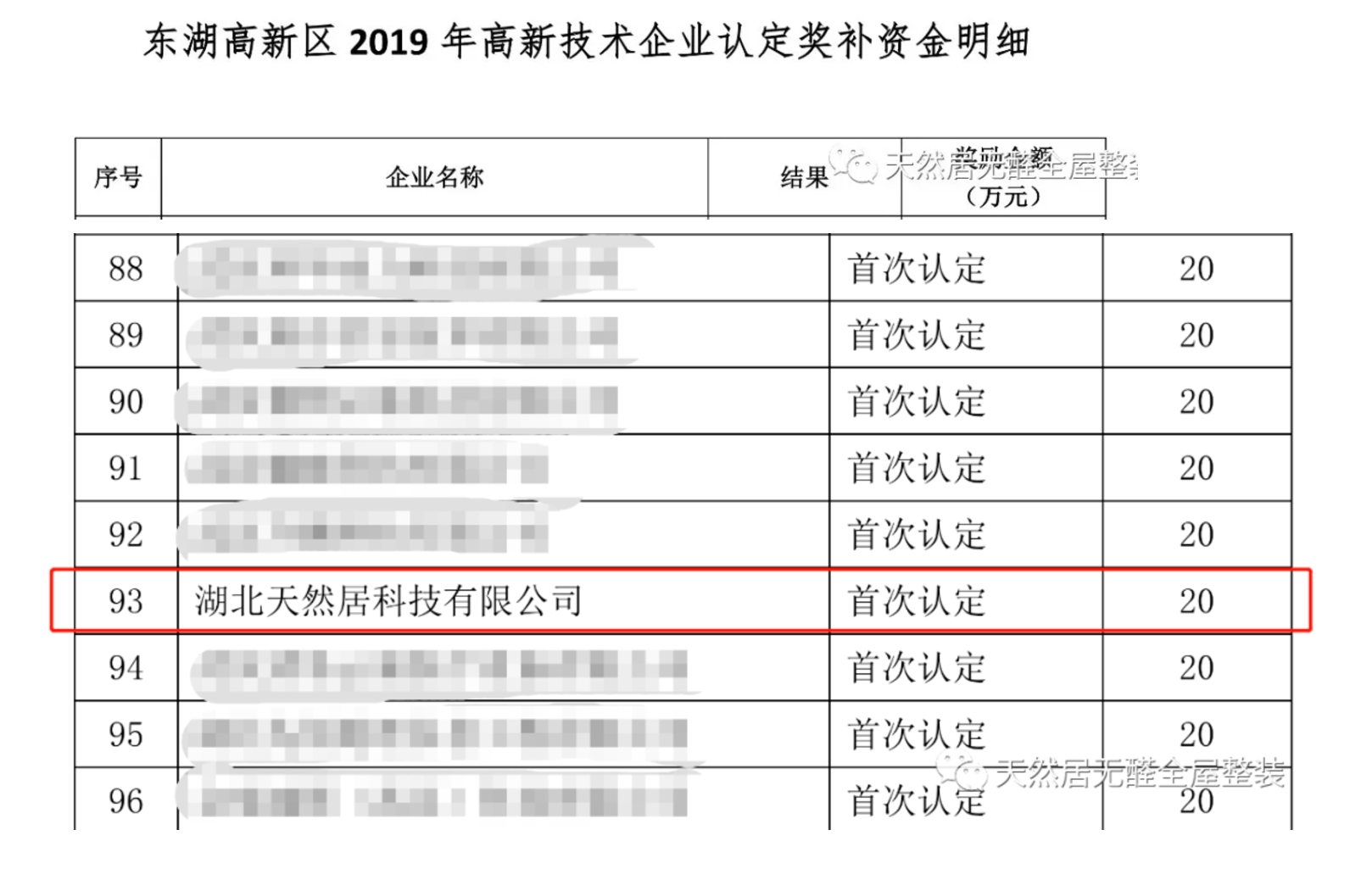 隨著經濟的發展,高新技術企業在國家發展中所占的地位也越來越重。2020年,針對高新技術企業,武漢將加大高新技術企業認定獎勵力度,對高新技術企業,市級財政給予每戶20萬元獎勵。天然居榮獲20萬獎勵。
