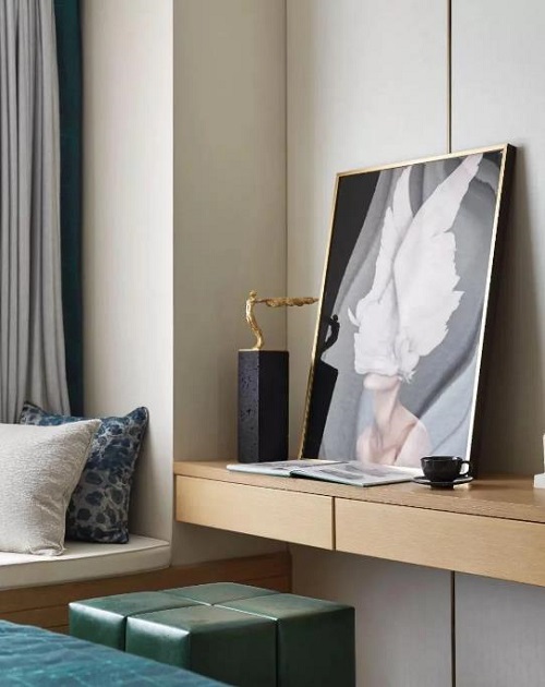 臥室是主人將情感與溫度注入這偏居空間的一隅。不同的色彩由光線變化堆疊出豐富的層次感,如思想者般穩重的理性之美滲透于細部,經歲月積淀的睿智優雅、均衡的節奏維度在私密空間中營造得游刃有余。