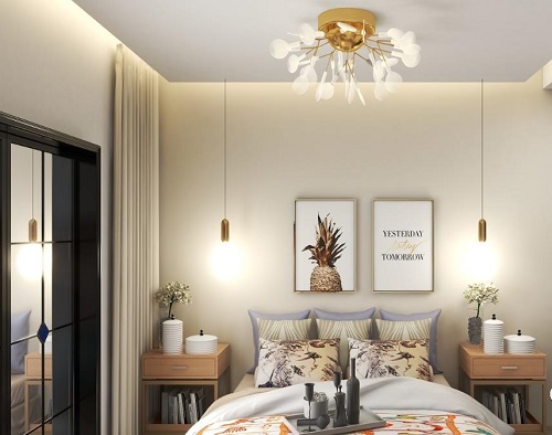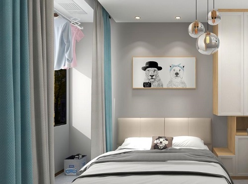臥室是用來休息的地方,裝修的比較簡約,一柜到頂的玻璃衣柜,高貴大氣,溫馨的床頭柜,吊頂的直射下來,綠植變得更為鮮艷,仿佛藝術品一般,美感十足。