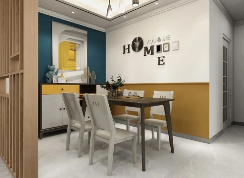 客餐廳緊靠在一起,用隔斷劃分兩個(gè)區(qū)域,增加兩個(gè)空間的隱私感。